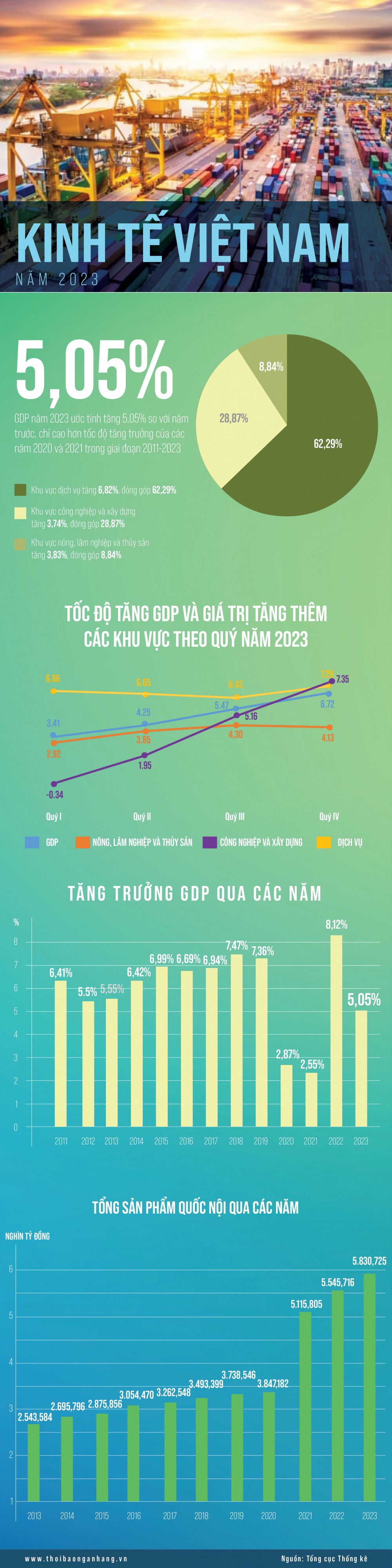 GDP năm 2023 ước tính tăng 5,05% so với năm trước, chỉ cao hơn tốc độ tăng trưởng của các năm 2020 và 2021 trong giai đoạn 2011-2023 .