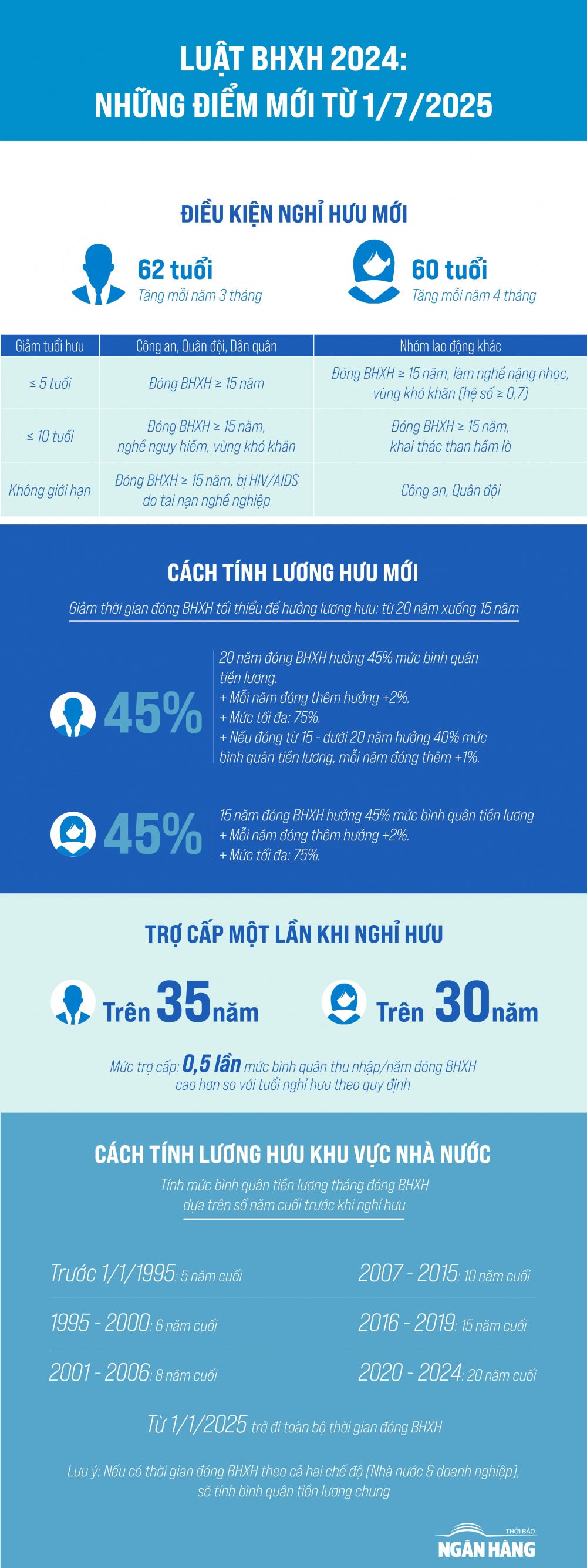 Từ ngày 1/7/2025, Luật Bảo hiểm xã hội (BHXH) 2024 chính thức có hiệu lực với nhiều thay đổi quan trọng. Những điều chỉnh về độ tuổi nghỉ hưu, cách tính lương hưu, trợ cấp một lần và mức bình quân tiền lương đóng BHXH sẽ tác động trực tiếp đến người lao động.