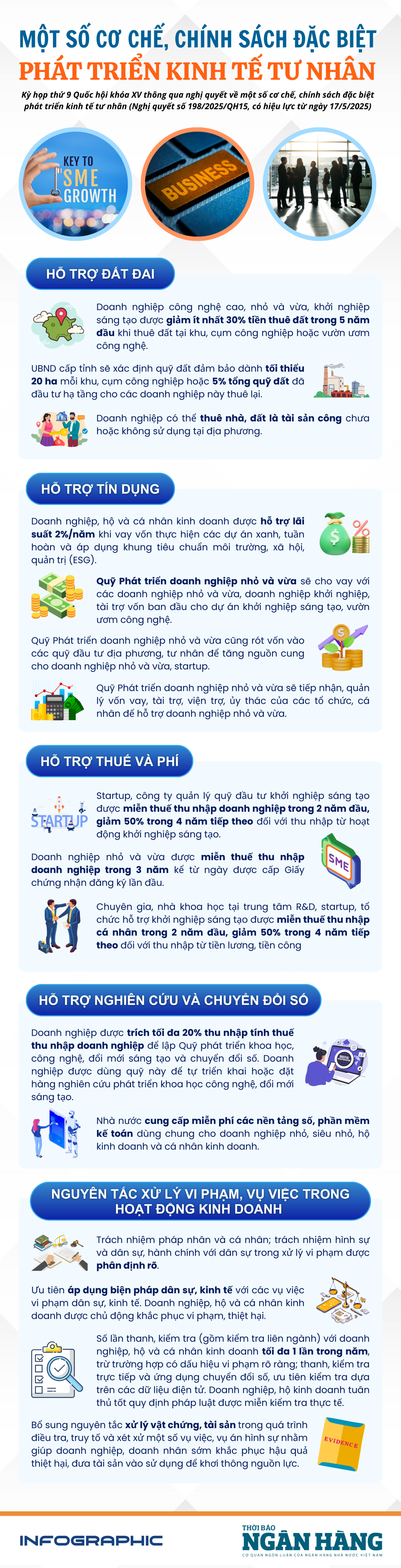 [Infographic] Một số cơ chế, chính sách đặc biệt phát triển kinh tế tư nhân