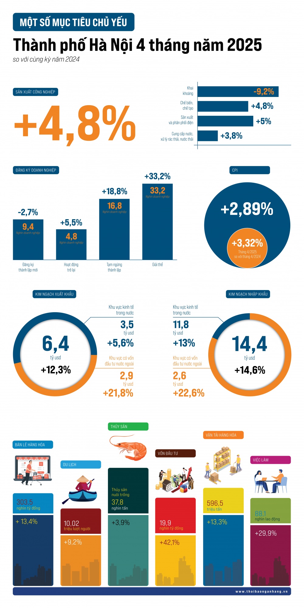 [Infographic] Một số mục tiêu chủ yếu TP. Hà Nội 4 tháng đầu năm 2025