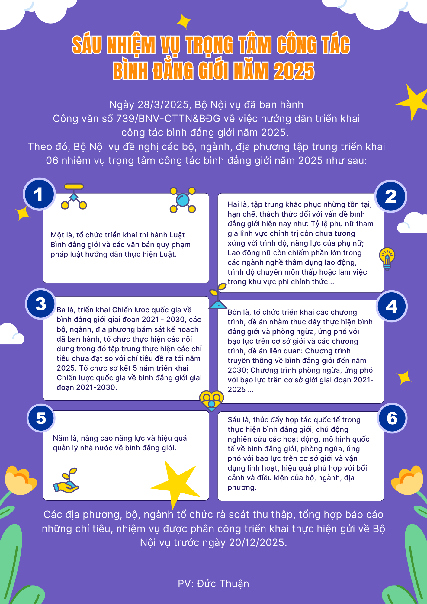 [Infographic] Sáu nhiệm vụ trọng tâm công tác bình đẳng giới năm 2025