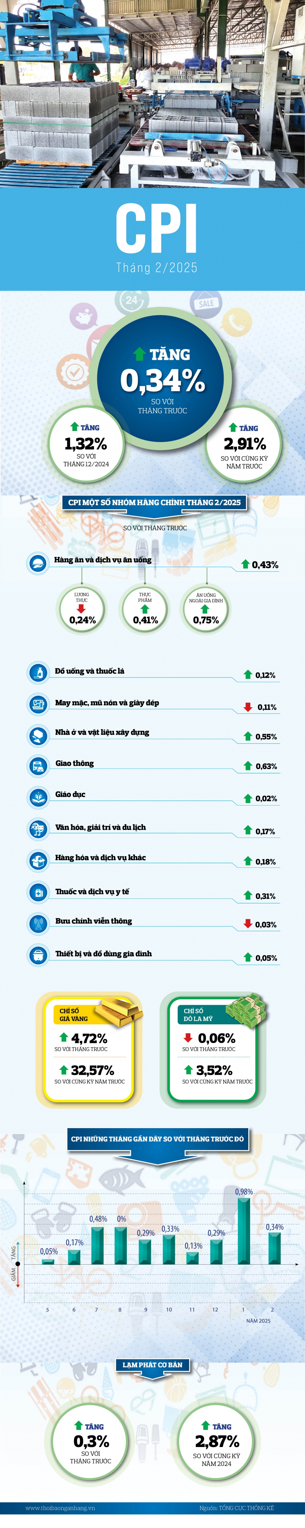 [Infographic] Tháng 2/2025: CPI tăng 0,34% so với tháng trước