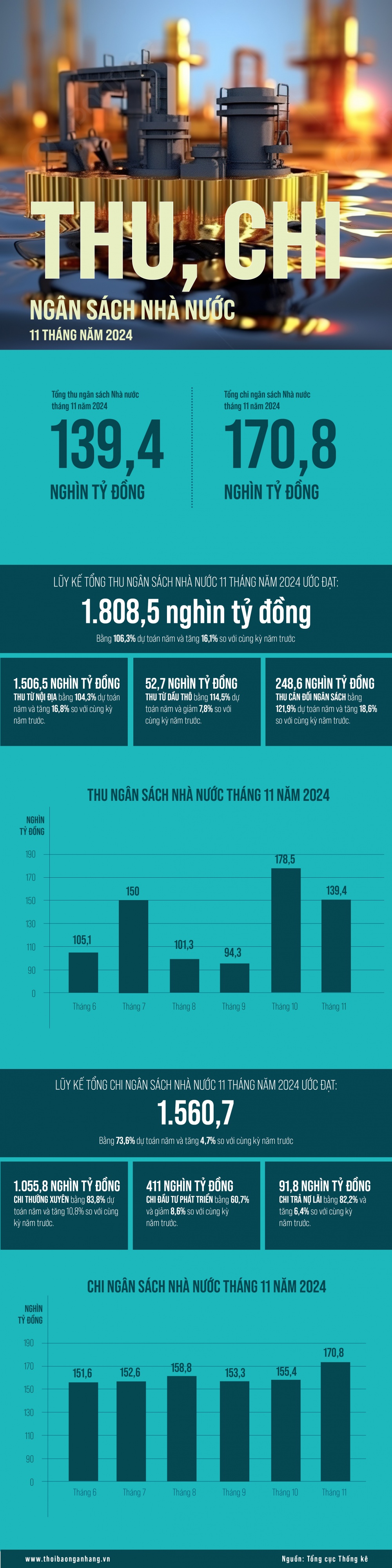 [Infographic] Thu, chi ngân sách Nhà nước 11 tháng năm 2024