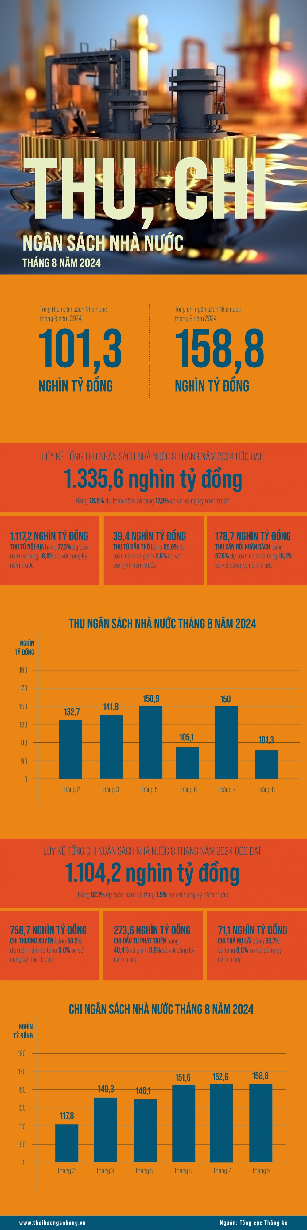 [Infographic] Thu chi ngân sách Nhà nước tháng 8 năm 2024