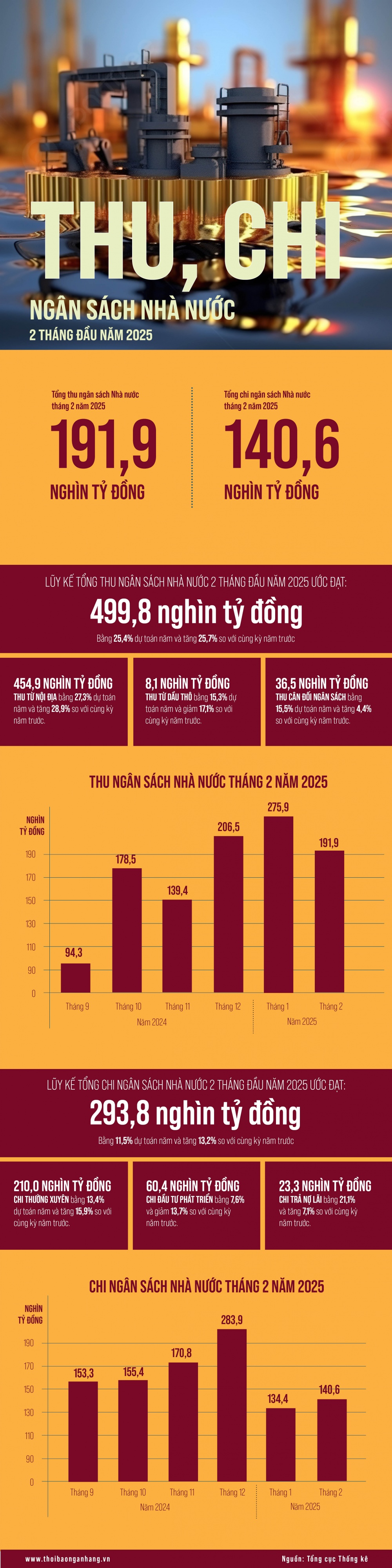 [Infographic] Thu ngân sách Nhà nước 2 tháng đầu năm 2025 tăng 25,7%