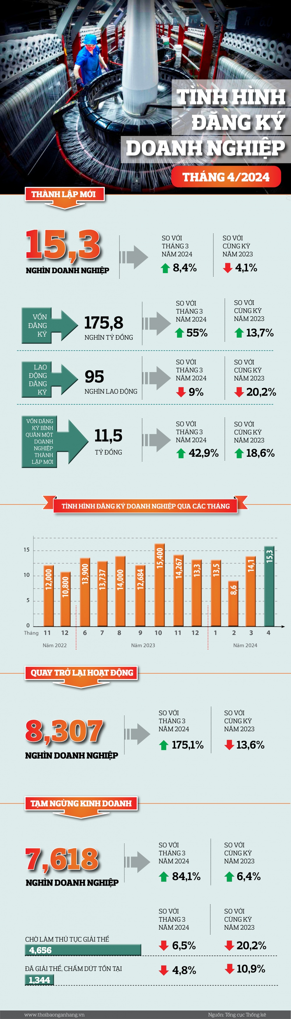 [Infographic] Tình hình đăng ký doanh nghiệp tháng 4/2024