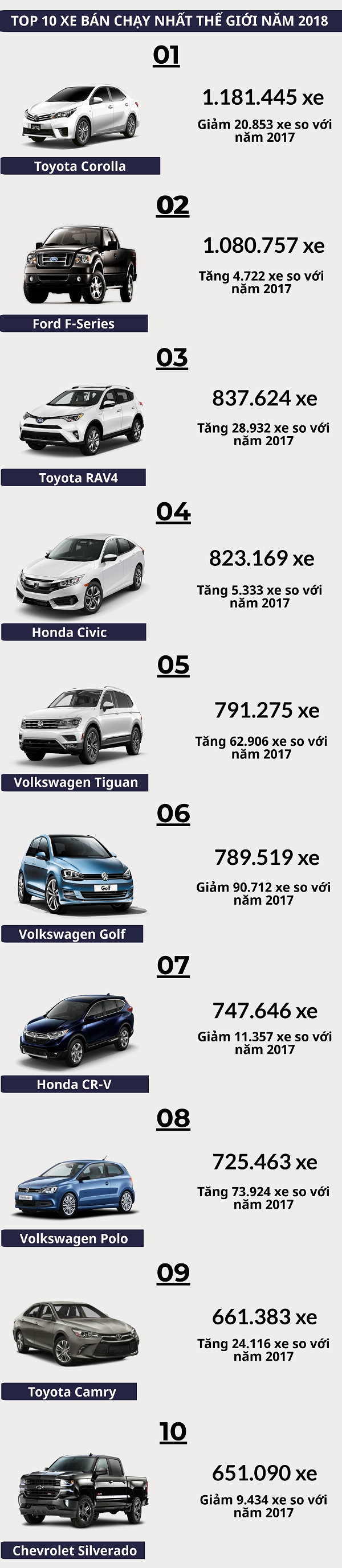 [Infographic] Top 10 xe bán chạy nhất thế giới 2018