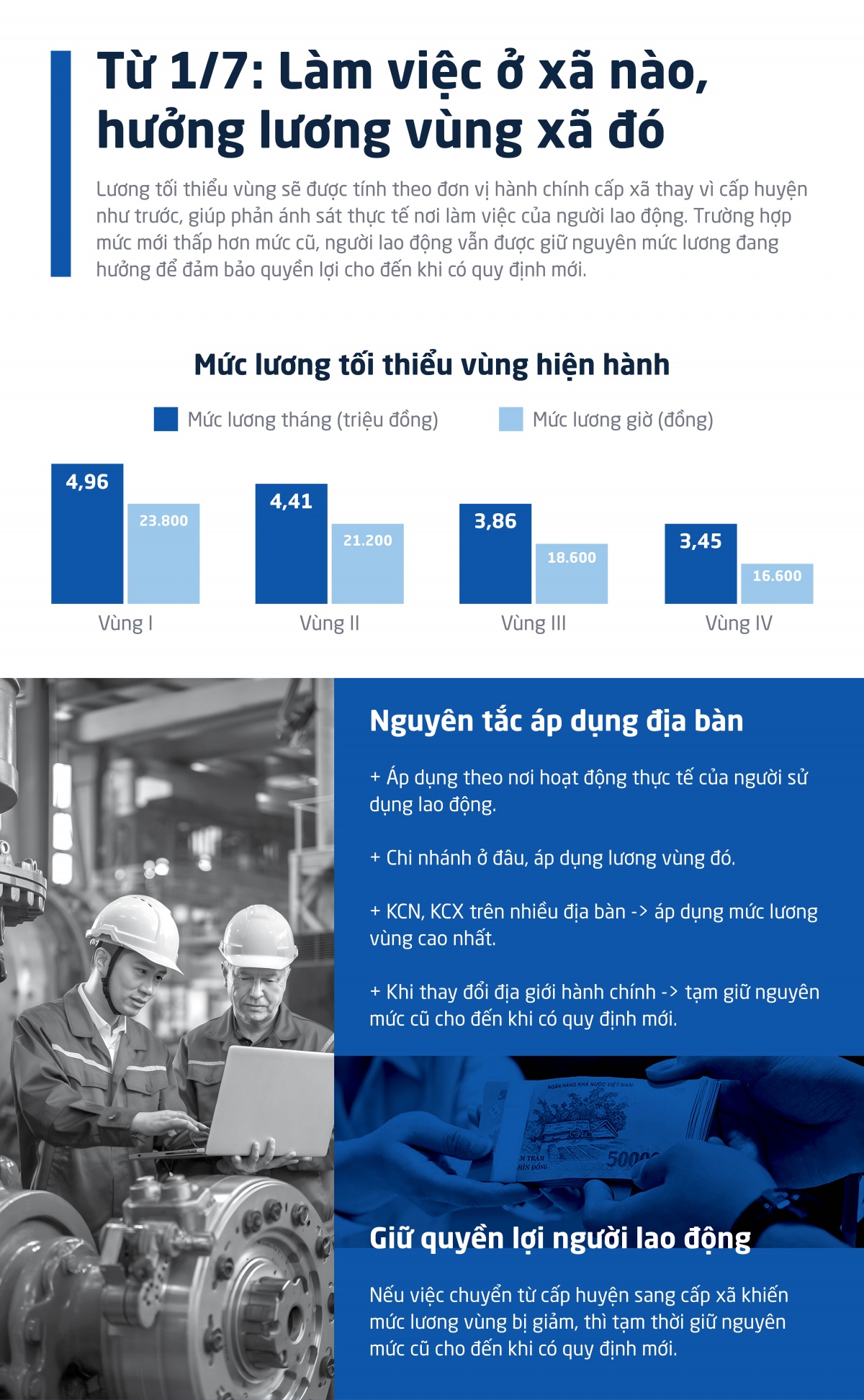 [Infographic] Từ 1/7, làm việc ở xã nào hưởng lương vùng xã đó