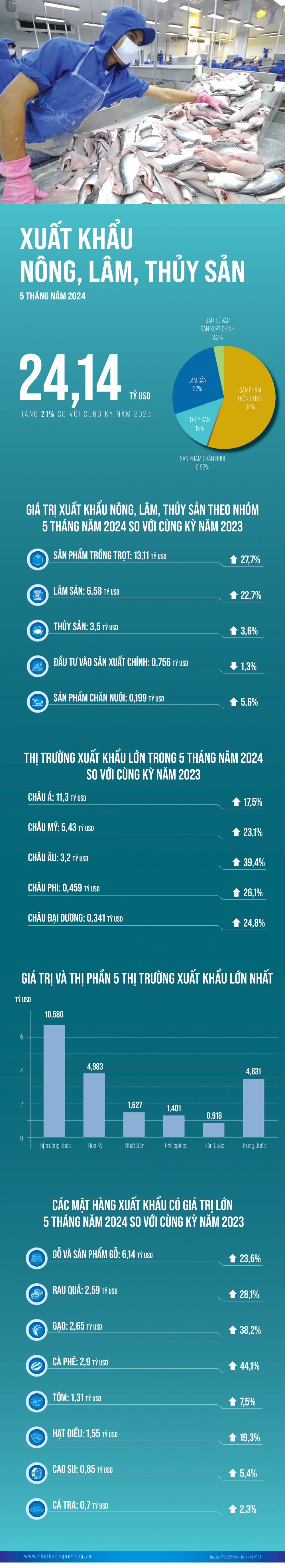 [Infographic] Xuất khẩu nông lâm thủy sản 5 tháng năm 2024