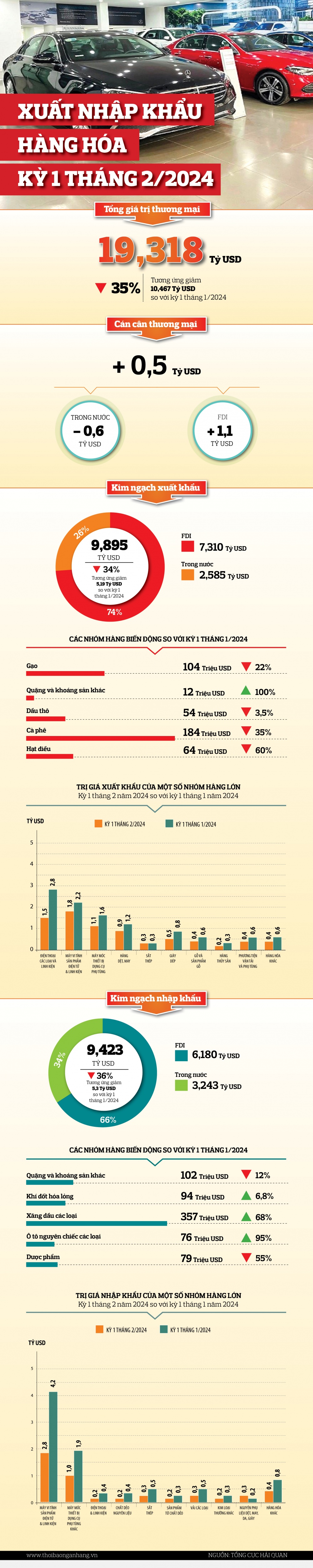 [Infographic] Xuất, nhập khẩu hàng hóa kỳ 1 tháng 2/2024
