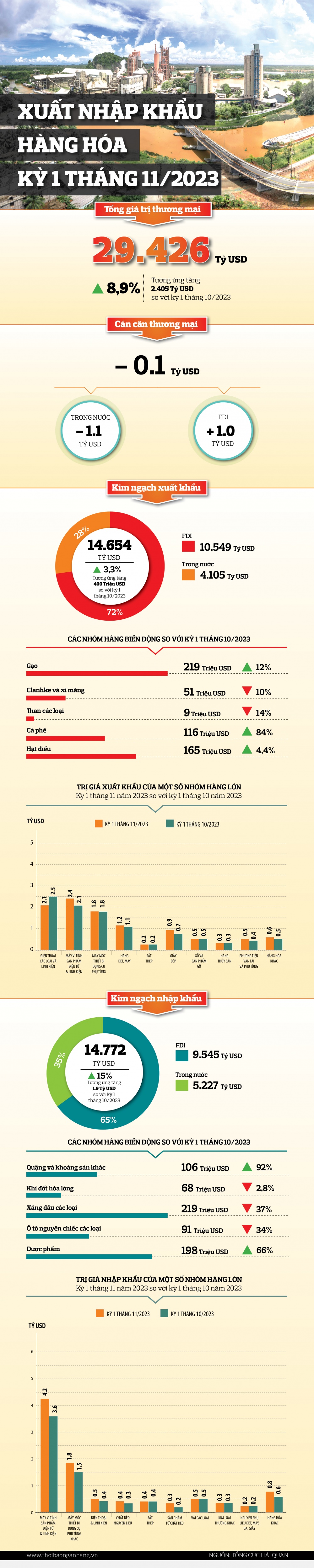 [Infographic] Xuất nhập khẩu kỳ 1 tháng 11/2023