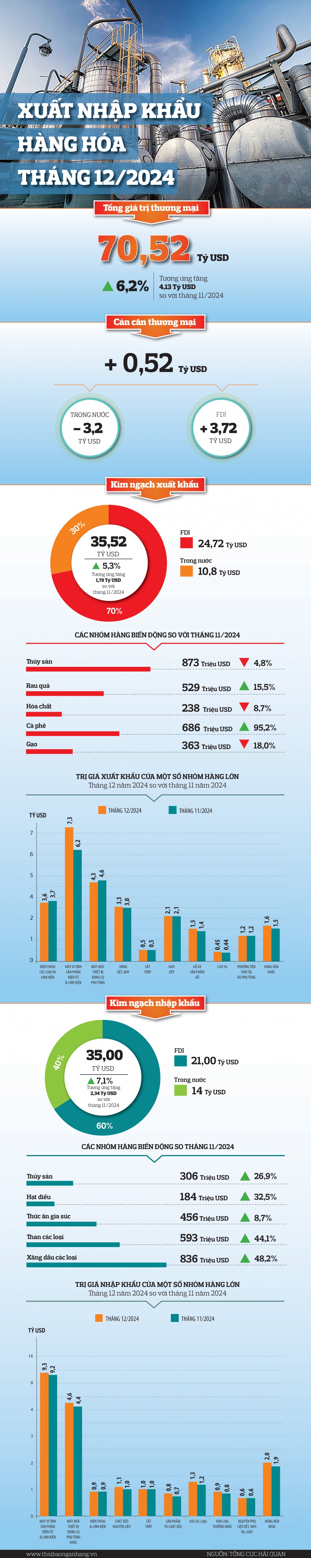 [Infographic] Xuất nhập khẩu tháng 12 đạt 70,52 tỷ USD