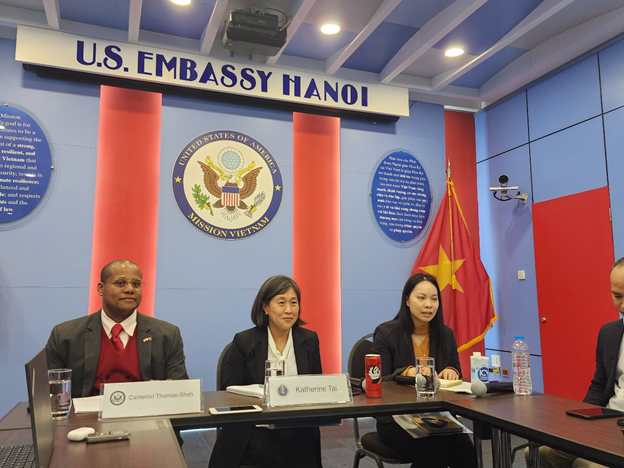 Cho phép tôi nhìn nhận câu hỏi này theo cách khác một chút. Trong các cuộc gặp của tôi với lãnh đạo Chính phủ Việt Nam và các bên liên quan tại Hà Nội, tôi đã nghe và thấy được sự quan tâm, ủng hộ lớn với việc Việt Nam tham gia vào IPEF. Tinh thần hào hứng ấy là vì những quy tắc và đề xuất mà Hoa Kỳ đưa ra trong khung IPEF đều là những tiêu chuẩn rất cao. Những tiêu chuẩn cao đó phản ánh được yêu cầu, nhu cầu của thị trường Hoa Kỳ.