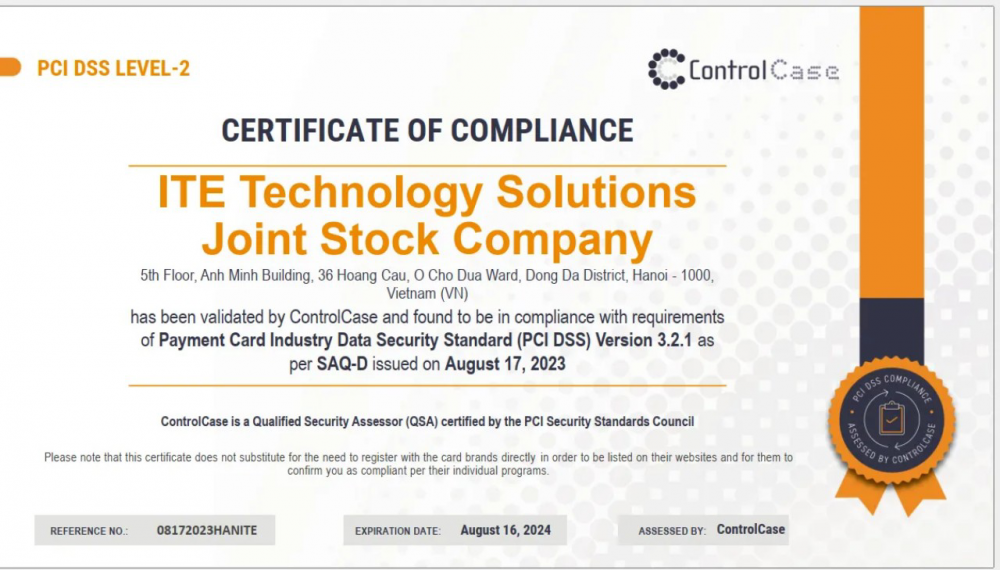 Chứng chỉ danh giá này một phần khẳng định vị thế của ITE trong thị trường thanh toán điện tử tại Việt Nam và là nền tảng quan trọng để ITE mở rộng cơ hội hợp tác với các tổ chức trong nước và quốc tế trong thời gian tới.