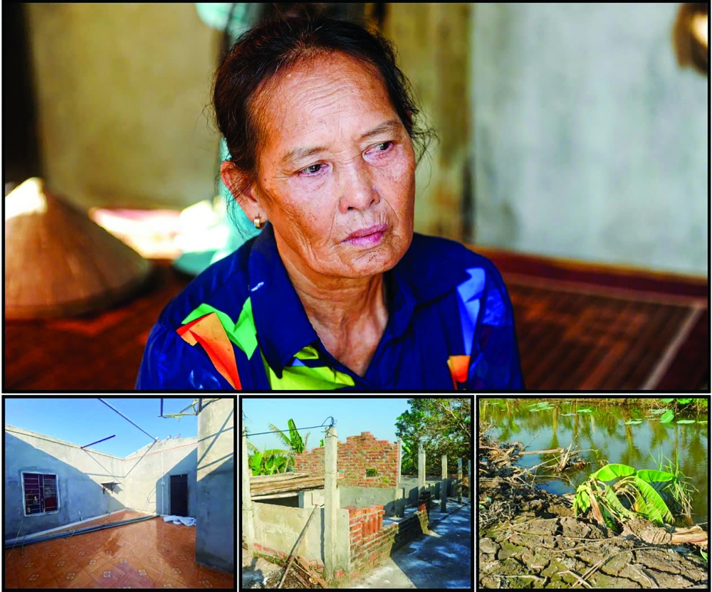 Hai vợ chồng ông Cương không kìm nổi nước mắt khi kể chuyện với chúng tôi. “Tôi lấy cám ra cho cá ăn, mà không có con nào ngoi lên như mọi ngày. Lúc ý tôi biết mình đã mất hết. Tôi đã 63 tuổi rồi nhưng chưa bao giờ chứng kiến cơn bão nào lớn thế này. Đau xót lắm”, ông Cương nghẹn ngào nói. Còn vợ ông bà Vũ Thị Choen đã ngã quỵ vào giây phút nhìn thấy căn nhà trơ trọi.