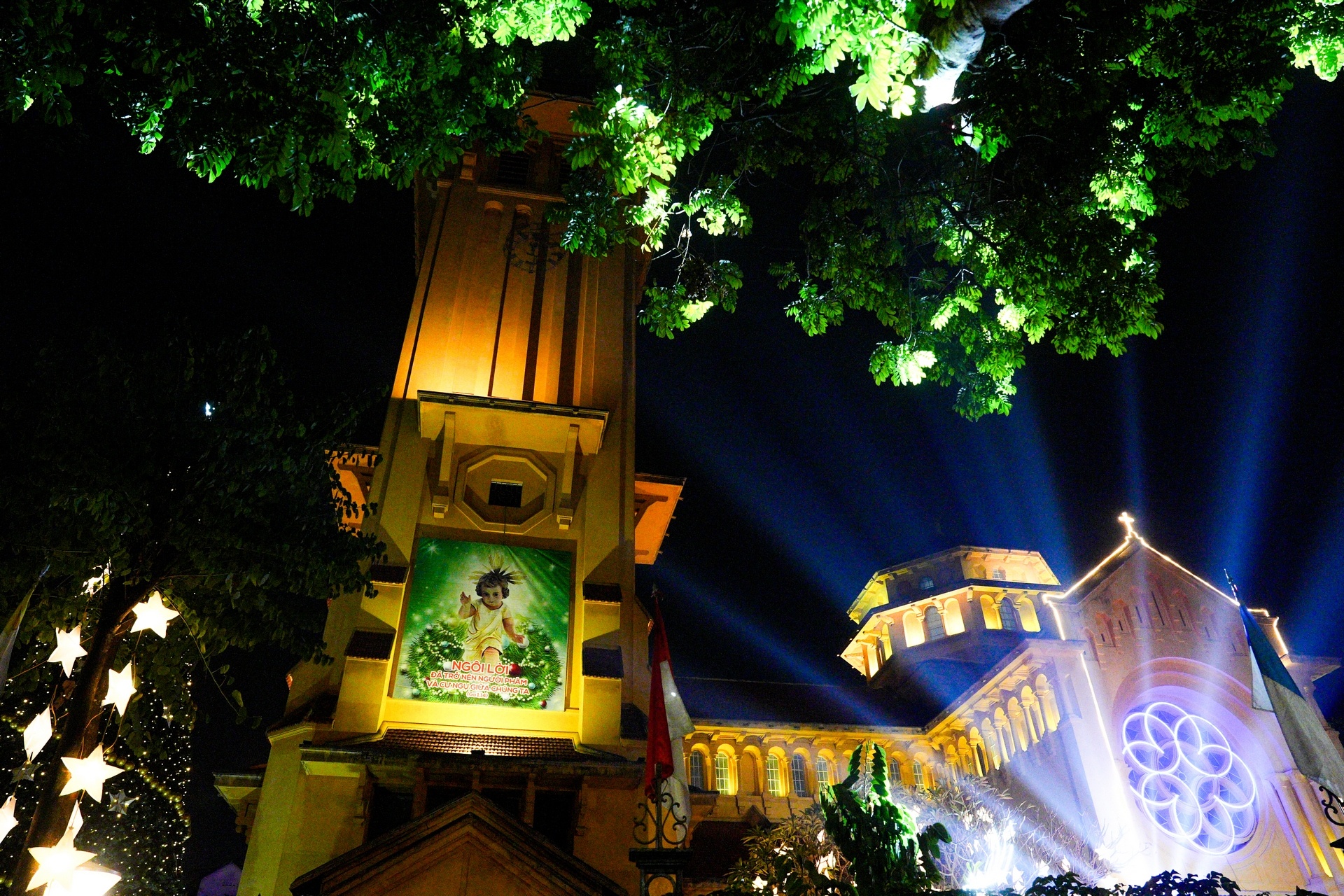 | Cây thông noel tại nhà thờ Lớn làm tôn không khí Giáng Sinh |