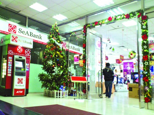 | Cây ATM thường được “trồng” ở cửa siêu thị, TTTM vì thói quen thanh toán bằng tiền mặt của người dân |