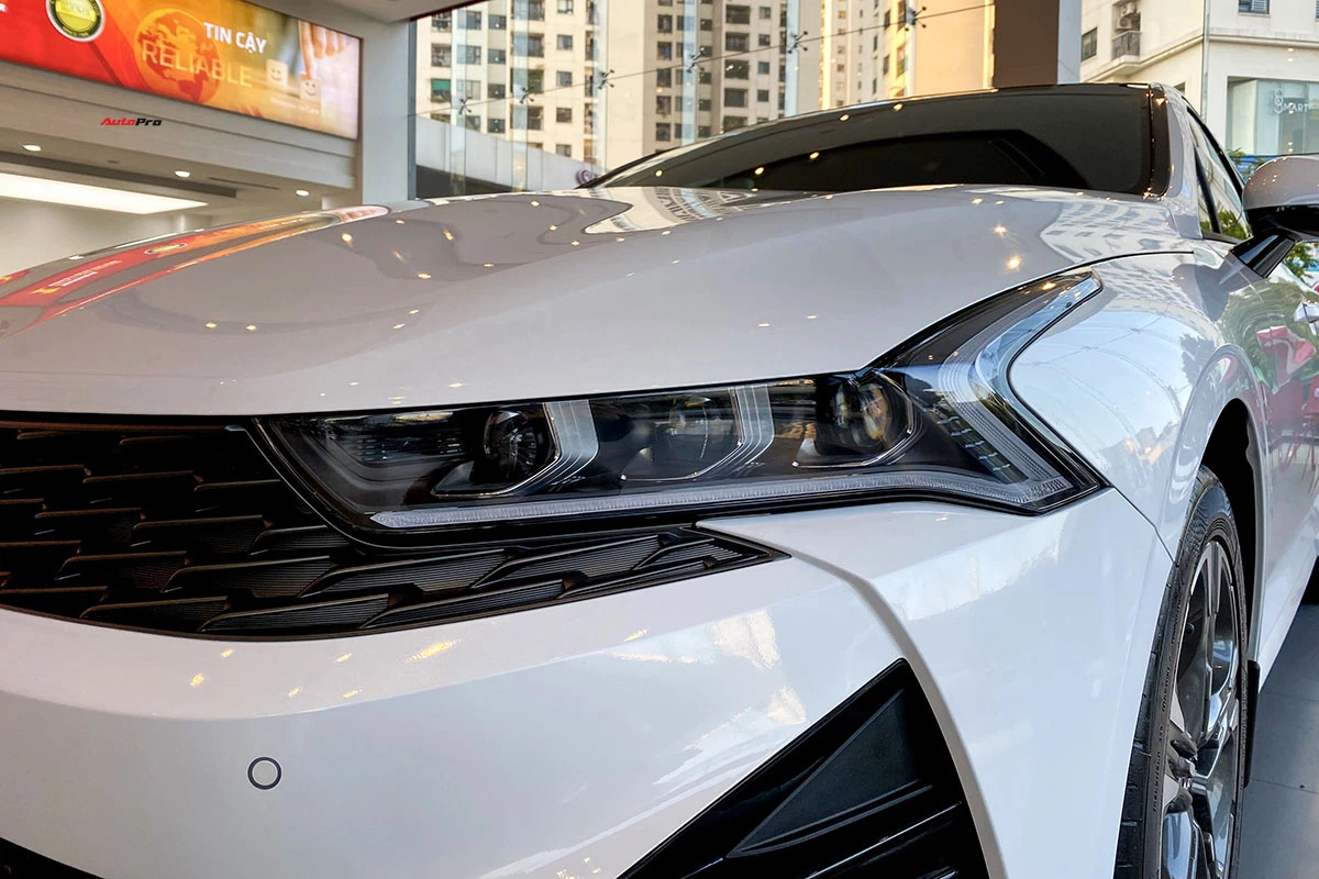 Với phiên bản GT-Line, Kia K5 được trang bị hệ thống đèn trước với 3 bóng LED Projector kết hợp đèn định vị ban ngày dạng LED góc cạnh và điệu đà, còn đèn sương mù hạ thấp xuống hốc gió phía trước.