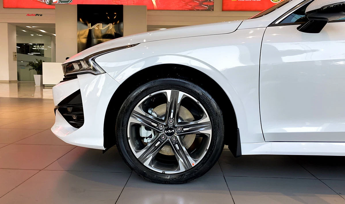 Kia K5 GT-Line ở Việt Nam có chiều dài x rộng x cao tương ứng ở mức 4.905 x 1.860 x 1.465 (mm) và chiều dài cơ sở đạt mức 2.850 mm. Bản thể thao được trang bị bộ mâm 5 chấu kép 18 inch. Ở bên hông còn có gương chiếu hậu chỉnh điện, gập tự động kết hợp báo rẽ và cảnh báo điểm mù.