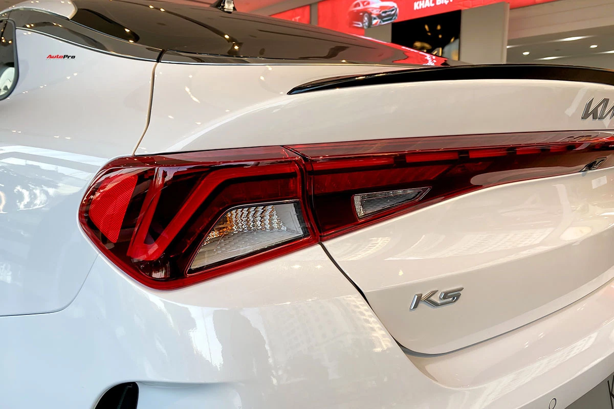 K5 GT-Line được trang bị cụm đèn hậu LED dạng đứt đoạn nối liền 2 bên, cùng logo mới cũng là điểm nhấn của mẫu xe này. Cản sau của K5 bản thể thao là các đường khuếch tán gió gia tăng tính khí động học, kết hợp ống xả chụp crom vuông vức.