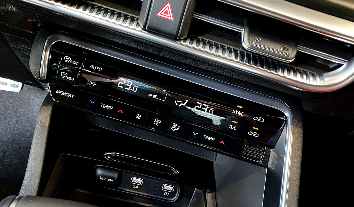 Trung tâm là màn hình dạng nổi tương tự Sorento, Seltos đang bán với kích thước 10,25 inch hỗ trợ kết nối Apple Carplay & Android Auto cùng dàn âm thanh 12 loa Bose. Xe còn nhiều tiện ích khác như sưởi/làm mát ghế, phanh tay điện tử & giữ phanh tự động, điều hòa 2 vùng độc lập tự động, cửa sổ trời toàn cảnh, rèm che nắng, sạc không dây...