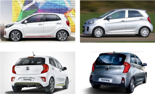 Kia Morning 2017 được thiết kế lại ngoại thất, mang lại diện mạo thể thao, năng động hơn so với mô hình trước đó. Xe được trang bị đèn pha kết hợp đèn LED, DRLs LED, đèn sương mù mới và lưới tản nhiệt hình mũi hổ đặc trưng với kích thước lớn hơn.