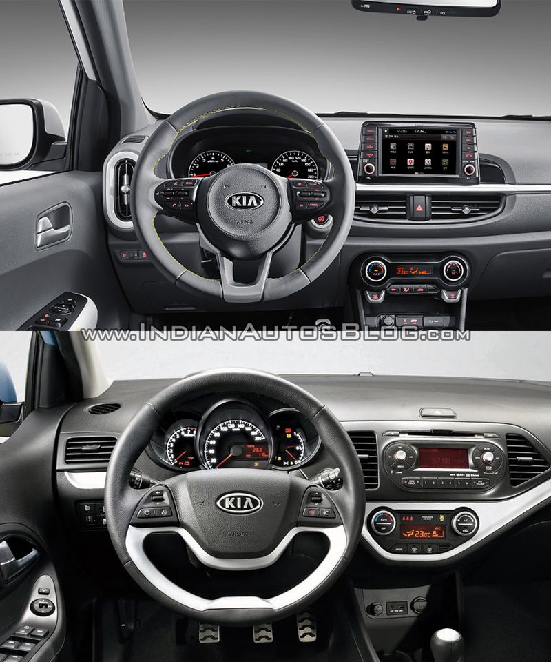 Có thể nói, nội thất Kia Moring 2017 đã trải qua một cuộc đại tu với những chi tiết được vay mượn từ thế hệ mới nhất của Kia Optima và Kia Rondo. Không gian nội thất lúc này của mẫu xe nhỏ trông thanh lịch, hiện đại và có phần sang trọng hơn.