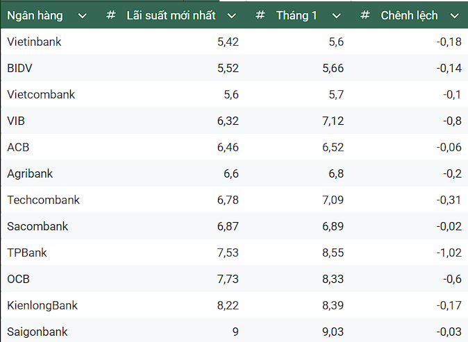 Bên cạnh đó, không ít các ngân hàng thương mại cổ phần cũng công bố mức giảm mạnh. Đơn cử như lãi suất cho vay bình quân của TPBank hiện chỉ còn 7,53%/năm, giảm tới 1,02% từ mức 8,55%/năm hồi đầu năm. Hay tại VIB, có mức lãi suất là 6,32%/năm, giảm 0,8% từ mức 7,12%/năm vào tháng 1.
