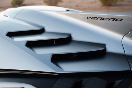 Chiếc Lamborghini Veneno duy nhất đã được chế tạo này vẫn có cặp cửa cắt kéo đặc trưng của dòng xe Aventador. Phía sau chiếc xe gây ấn tượng mạnh bởi các bộ phận mang tính khí động lực học, với nắp khoang động cơ độc đáo, các sọc sơn trang trí mang ba tông màu trắng/đỏ/xanh, theo tông màu Quốc kỳ Ý. Ba chiếc Lamborghini Veneno còn lại sẽ được sơn tông màu cơ bản gồm màu xanh, màu đỏ và màu trắng, trong đó có hai chiếc xe đã thuộc về những người yêu xe tại Mỹ.