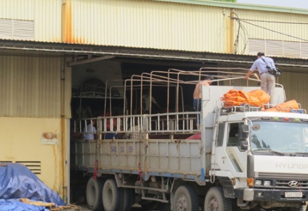 Số cà phê tại kho của Công ty Trường Ngân đang bị cưỡng chế đưa về cất giữ ở một kho khác