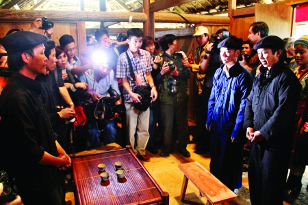 Cuối buổi lễ, gia đình nhà gái cùng bà con trong làng được mời ở lại nhà trai phá cỗ mừng dâu mới.