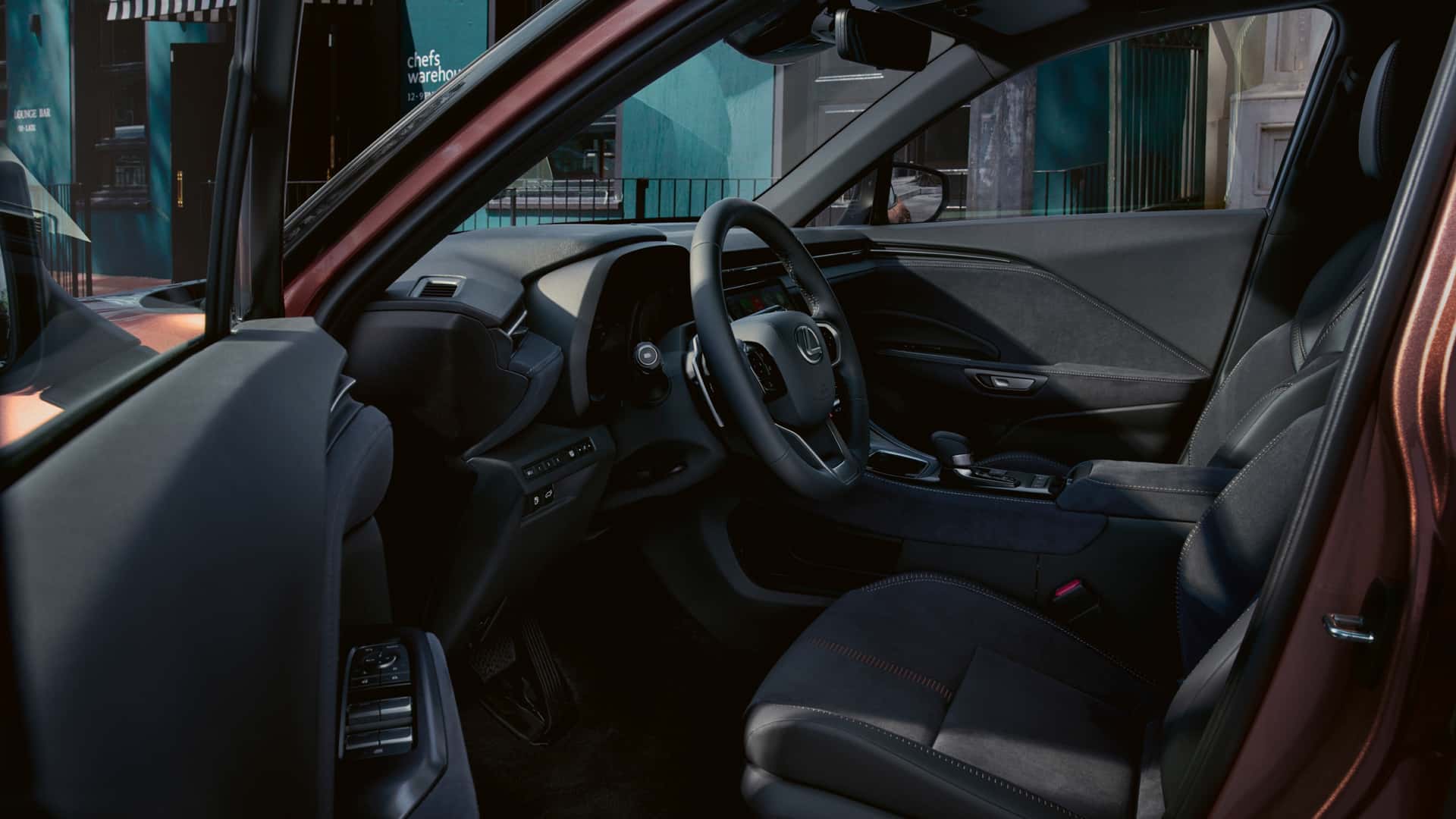 Nội thất Lexus LBX, theo những gì đã được công bố, sử dụng bảng đồng hồ kỹ thuật số 12,3 inch đi kèm màn HUD (chỉ có trên bản cao cấp) và màn cảm ứng trung tâm 9,8 inch. Apple CarPlay có hỗ trợ kết nối không dây nhưng Android Auto yêu cầu dây cắm. Hệ thống loa được chọn là loại 13 loa Mark Levinson.