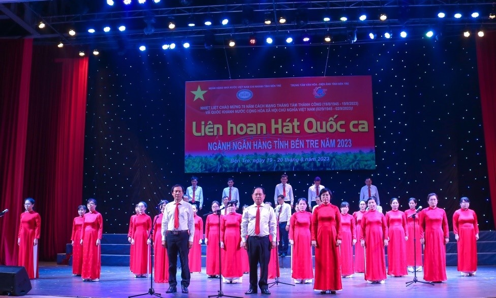Liên hoan hát Quốc ca ngành Ngân hàng tỉnh Bến Tre năm 2023 có sự tham gia của 17 đội thi đến từ các tổ chức tín dụng trên địa bàn. Lễ khai mạc diễn ra tại Hội trường TTVH-ĐA tỉnh, đến dự có ông Nguyễn Trúc Sơn - Phó Chủ tịch Thường trực UBND tỉnh, Trưởng Đoàn đại biểu Quốc hội đơn vị tỉnh Bến Tre; ông Lê Công Thành - Bí thư Đảng ủy, Giám đốc NHNN tỉnh, Trưởng Ban tổ chức.