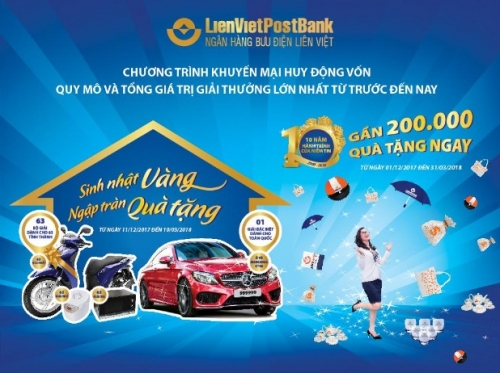 “Sinh nhật vàng – ngập tràn quà tặng” là chương trình khuyến mãi lớn nhất của LienVietPostBank kể từ khi thành lập đến nay. Chia sẻ về chương trình này, ông Phạm Doãn Sơn – Phó Chủ tịch thường trực HĐQT kiêm Tổng Giám đốc LienVietPostBank – cho biết: “LienVietPostBank mong muốn gửi lời cảm ơn chân thành nhất tới khách hàng đã tin tưởng và sử dụng sản phẩm, dịch vụ của ngân hàng trong suốt 10 năm qua, khẳng định cam kết của chúng tôi sẽ luôn đồng hành cùng khách hàng trong mọi vấn đề liên quan đến tài chính, mang lại giá trị và lợi ích tốt nhất cho khách hàng. LienVietPostBank hy vọng tiếp tục đồng hành cùng khách hàng trong hành trình hiện thực hóa mục tiêu trở thành “Ngân hàng bán lẻ hàng đầu Việt Nam – Ngân hàng của mọi người” trong thời gian sớm nhất”.