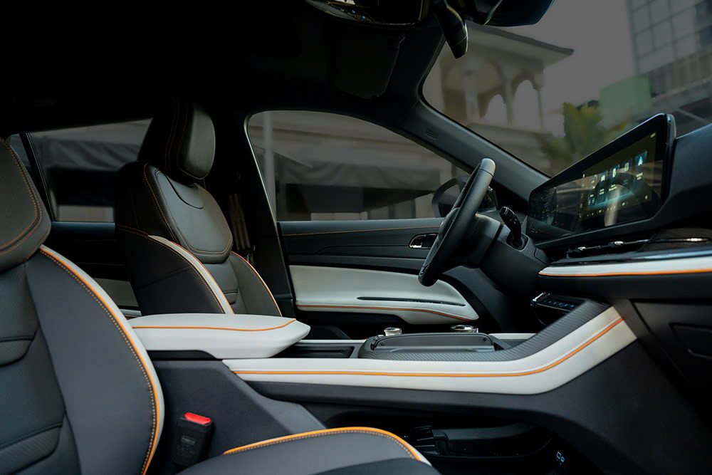Thay đổi bên trong xe cũng chủ yếu đến từ cách phối màu. Ghế xe, bảng táp-lô hay vô-lăng được điểm thêm phần viền và chỉ khâu màu cam. Vật liệu da phối thêm màu trắng tương phản trên nền tối. Phần ốp ở khu vực cần số nay dùng họa tiết carbon nhám, thay vì đen bóng như trên các bản khác.