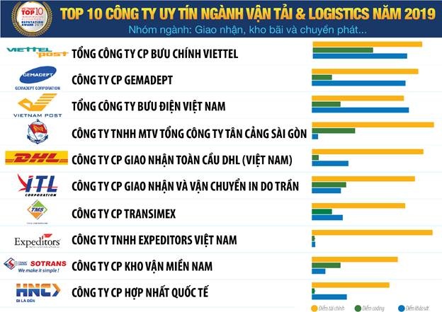 Cũng trong dịp này, Vietnam Report đã công bố Top 10 Công ty vận tải và logistics uy tín năm 2019. Top 10 Công ty uy tín ngành vận tải và logistics được xây dựng dựa trên nguyên tắc khoa học và khách quan. Các công ty được đánh giá, xếp hạng dựa trên 3 tiêu chí chính: (1) Năng lực tài chính thể hiện trên báo cáo tài chính năm gần nhất; (2) Uy tín truyền thông được đánh giá bằng phương pháp Media Coding - mã hóa các bài viết về công ty trên các kênh truyền thông có ảnh hưởng; (3) Khảo sát các chuyên gia trong ngành và Khảo sát doanh nghiệp được thực hiện trong tháng 11/2019 về quy mô vốn, thị trường, lao động, tốc độ tăng trưởng doanh thu, lợi nhuận, kế hoạch hoạt động trong năm 2019…