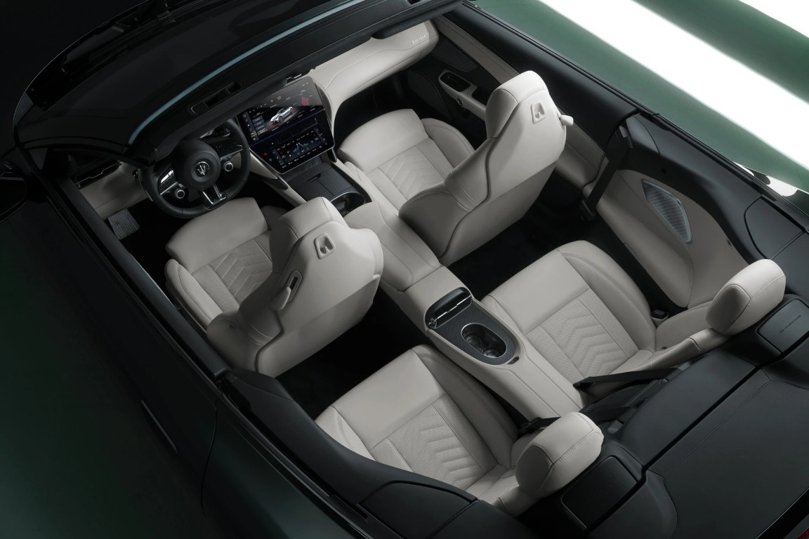 Khoang lái của xe giữ nguyên thiết kế với bảng đồng hồ kỹ thuật số 12,2 inch, màn hình trung tâm 12,3 inch và màn hình phụ 8,8 inch. Maserati cung cấp ba lựa chọn màu nội thất tiêu chuẩn gồm: kem Ghiaccio, đen Nero và nâu Cuoio.