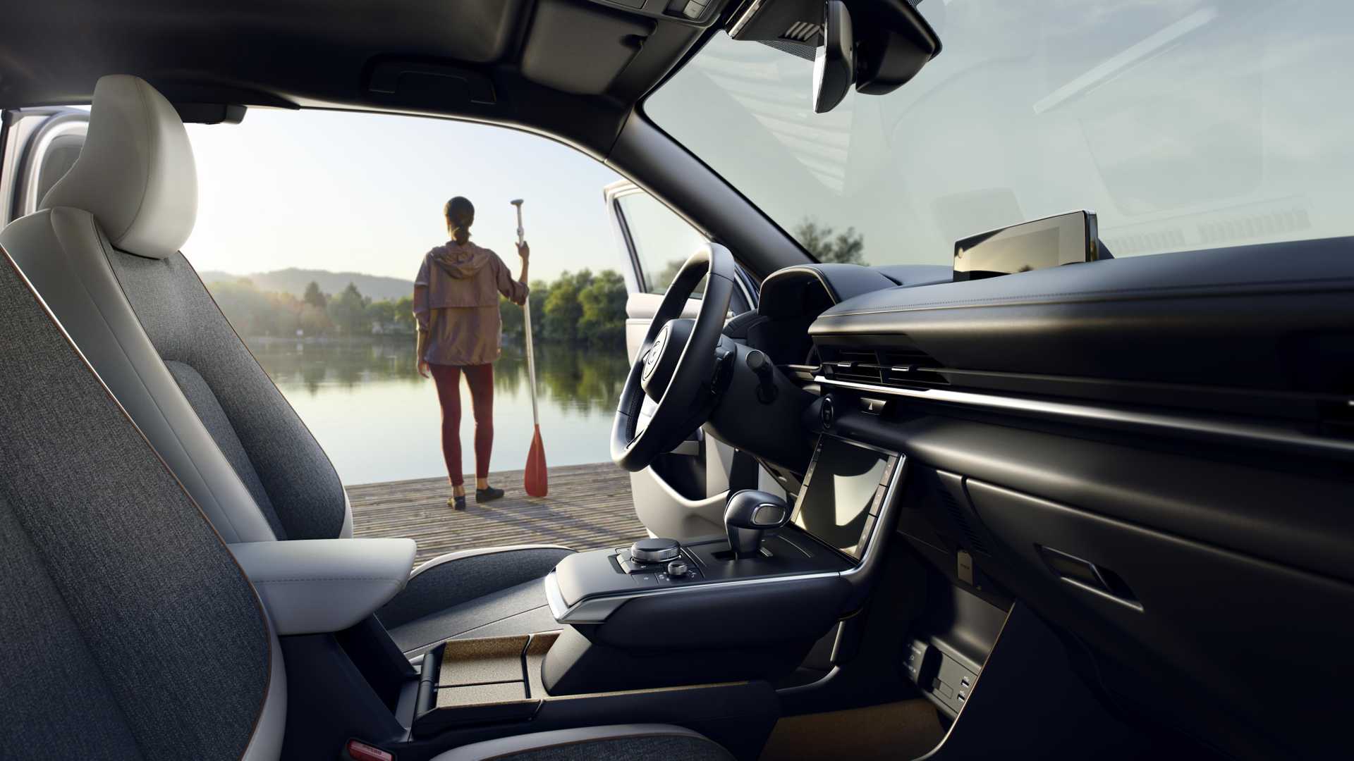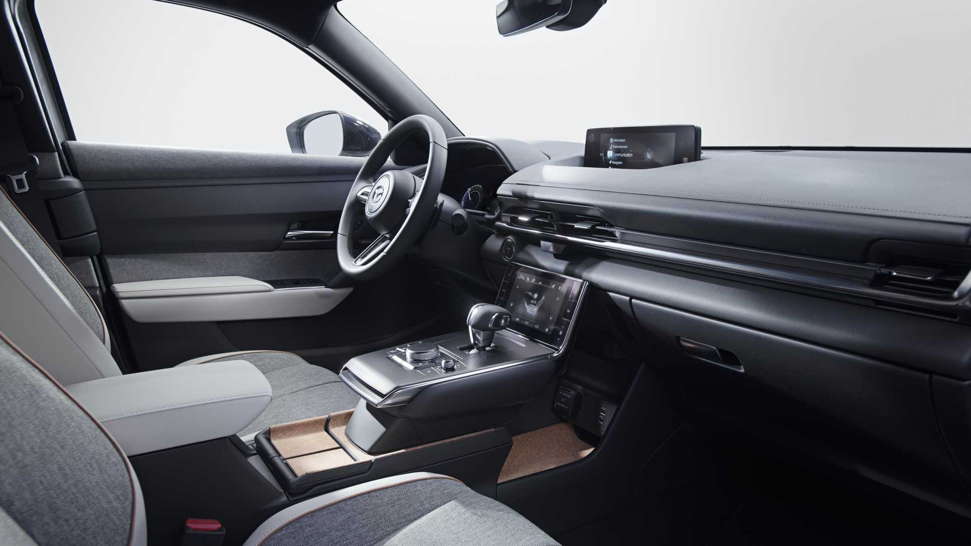 Cabin MX-30 được chế tạo bằng các chất liệu thân thiện với môi trường như gỗ trên cụm điều khiển trung tâm lấy từ cây còn khả năng sống và tái tạo, ốp cửa làm từ sợi nhựa tái chế hay vải bọc ghế cũng tái chế nốt.