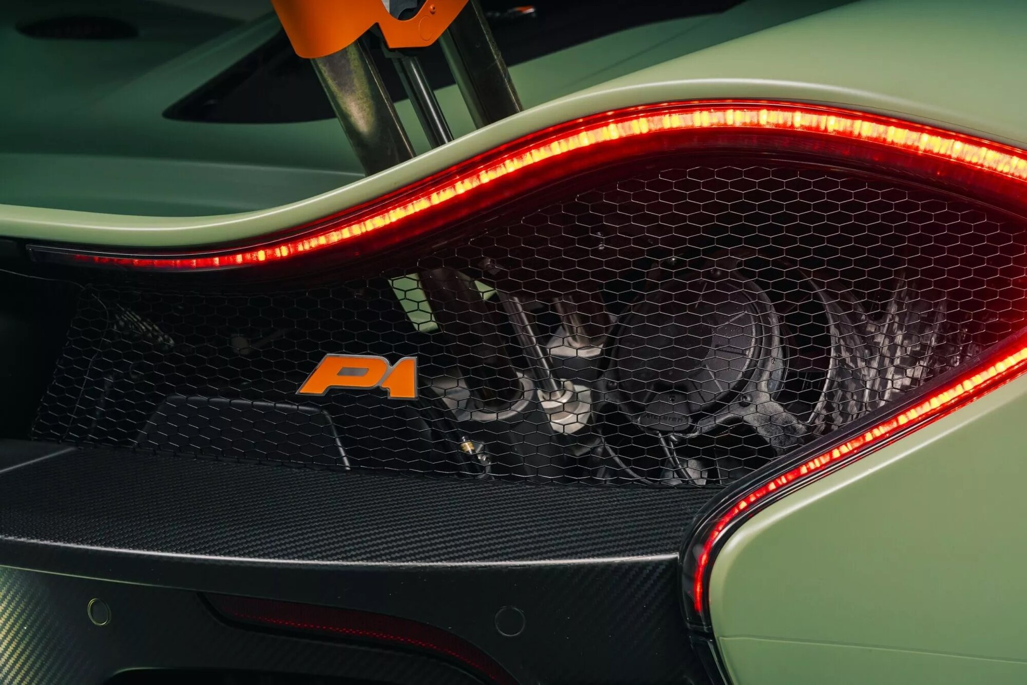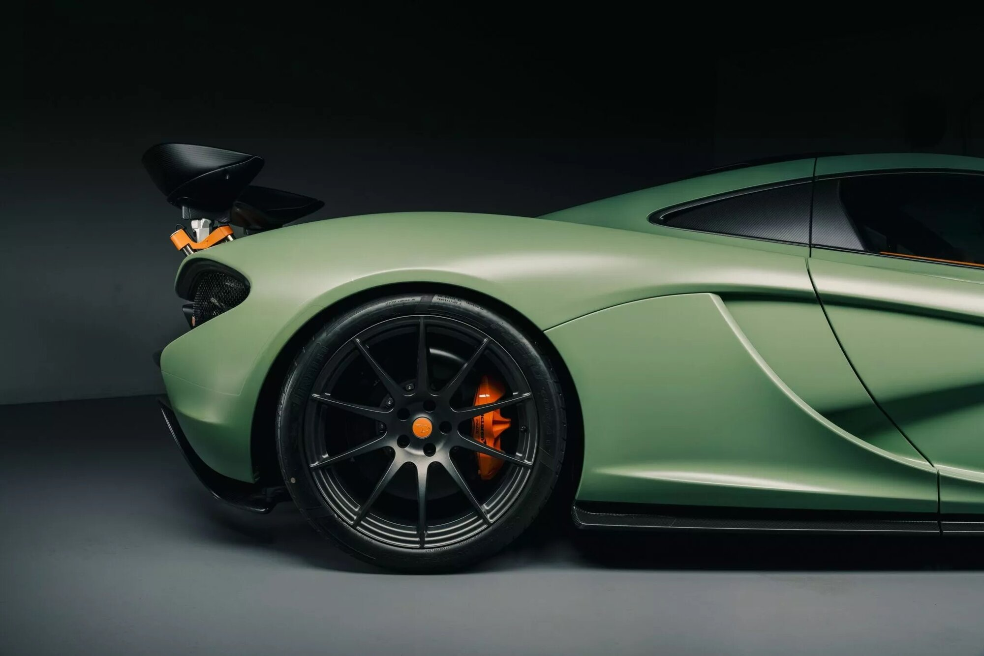 Chiếc P1 xuất hiện trong phiên đấu giá lần này thuộc sở hữu của một doanh nhân tại Qatar. Xe có cấu hình độc nhất trong toàn bộ dây chuyền sản xuất P1, với ngoại thất phủ màu xanh lá mờ Satin Camo Green – màu sơn không thể tìm thấy trên bất kỳ chiếc P1 nào khác. Bên cạnh lớp sơn đặc biệt, McLaren còn sử dụng màu cam McLaren Orange để nhấn nhá nhiều chi tiết như logo, cùm phanh, nắp logo bánh xe, thanh thủy lực cánh gió, logo P1 trên nắp động cơ và cánh hông sau bánh trước.
