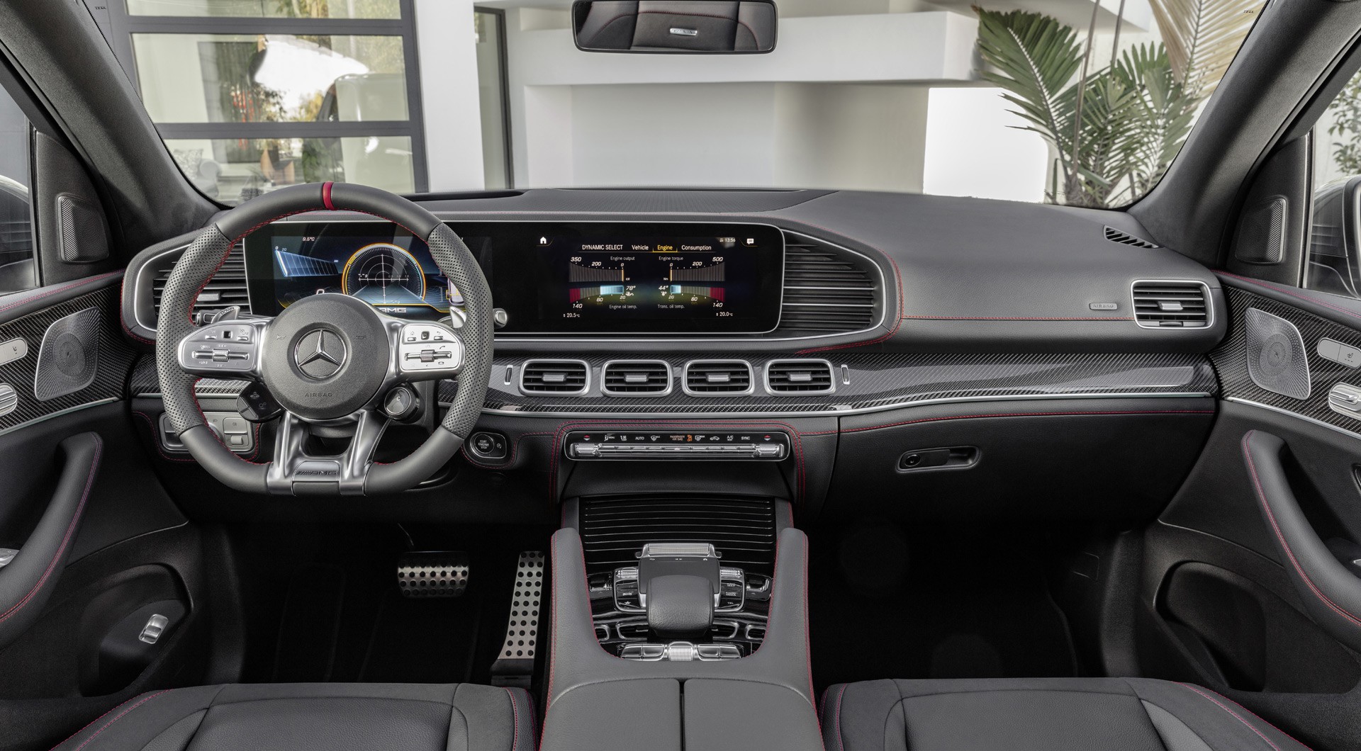 Xét về thiết kế, GLE53 tạo điểm nhấn riêng với bản tiêu chuẩn qua tản nhiệt Panamericana, ốp đầu xe hầm hố và hệ thống ống xả dạng tứ. Cabin chiếc SUV hiệu suất cao có thêm vô lăng thể thao, lẫy chuyển số nhôm và màn hình thông tin giải trí AMG tích hợp bộ thu thập dữ liệu vận hành chuyên dụng Track Pace.