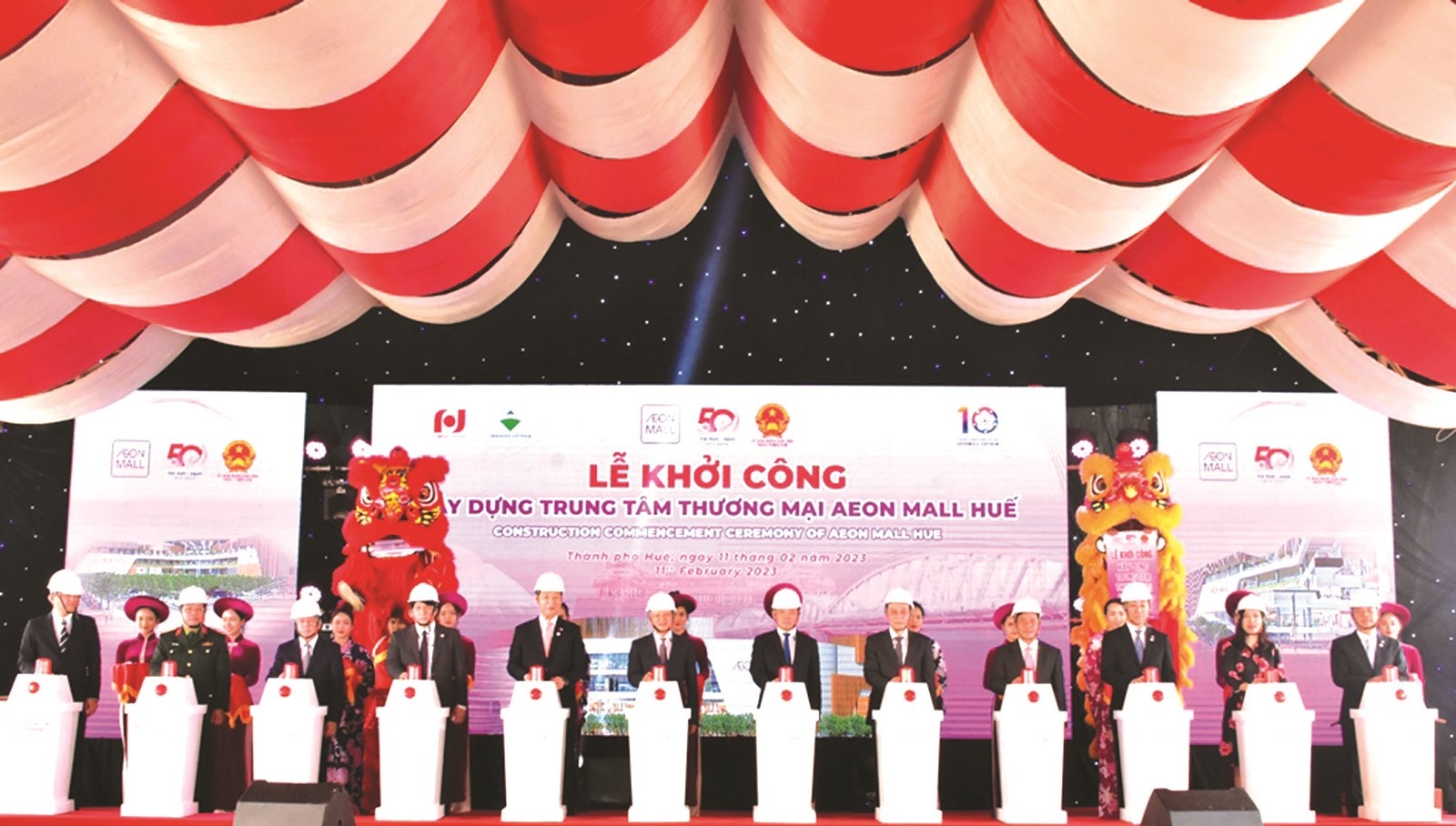 Mới đây, UBND tỉnh Thừa Thiên - Huế và các nhà đầu tư Nhật Bản đã tổ chức khởi công Dự án Trung tâm thương mại (TTTM) Aeon Mall Huế tại khu Đô thị mới An Vân Dương, TP. Huế. Dự án có tổng diện tích mặt bằng hơn 86.000 m2, với tổng vốn đầu tư gần 170 triệu USD, được xem là TTTM dịch vụ tổng hợp có quy mô lớn nhất miền Trung hiện nay. Aeon Mall Huế hoàn thành sẽ mang đến một trải nghiệm mua sắm và thư giãn trọn vẹn cho người dân cố đô và du khách với hơn 135 gian hàng ẩm thực, thời trang, giải trí, siêu thị…