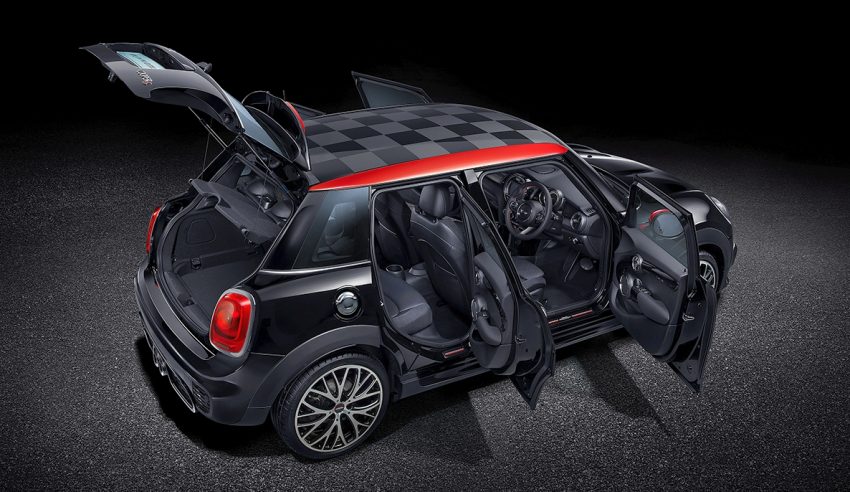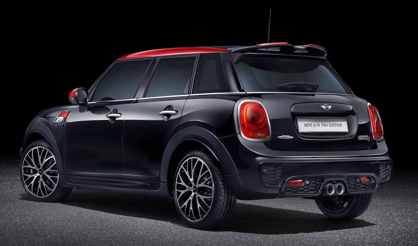 Phiên bản mới được dựa trên nền tảng của chiếc F55 MINI Cooper S 5 cửa. JCW Pro Edition cũng được trang bị thêm một số phụ kiện để giúp làm cho nó độc đáo hơn như: Bộ kit khí động học JCW Pro bao gồm một splitter phía trước, bên hông, cản sau và đuôi xe, kết hợp với bánh xe hợp kim nhẹ 18-inch... Cùng với đó là điểm nhấn màu sắc đồ họa caro đỏ đen ở gương chiếu hậu và mái xe.
