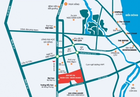Khu vực này còn là cửa ngõ của trục cao tốc 6 làn xe Trần Đại Nghĩa, sân golf 18 lỗ, làng đại học tầm cỡ quốc tế, khu đô thị kiểu mẫu hiện đại FPT và khu đô thị hiện đại Điện Nam Điện Ngọc. Từ dự án bán kính 2km về phía Đông tiếp giáp với dòng sông Cổ Cò thơ mộng và bãi biển du lịch 5 sao đẹp nhất hành tinh.