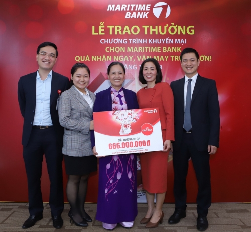 Hòa chung niềm vui cùng cô Hậu và bên cạnh giải 666 triệu đồng, 12 khách hàng khác cũng đã nhận được 12 giải tháng lên đến 66 triệu đồng/giải từ chương trình “Chọn Maritime Bank: Quà nhận ngay – Vận may trúng lớn”.