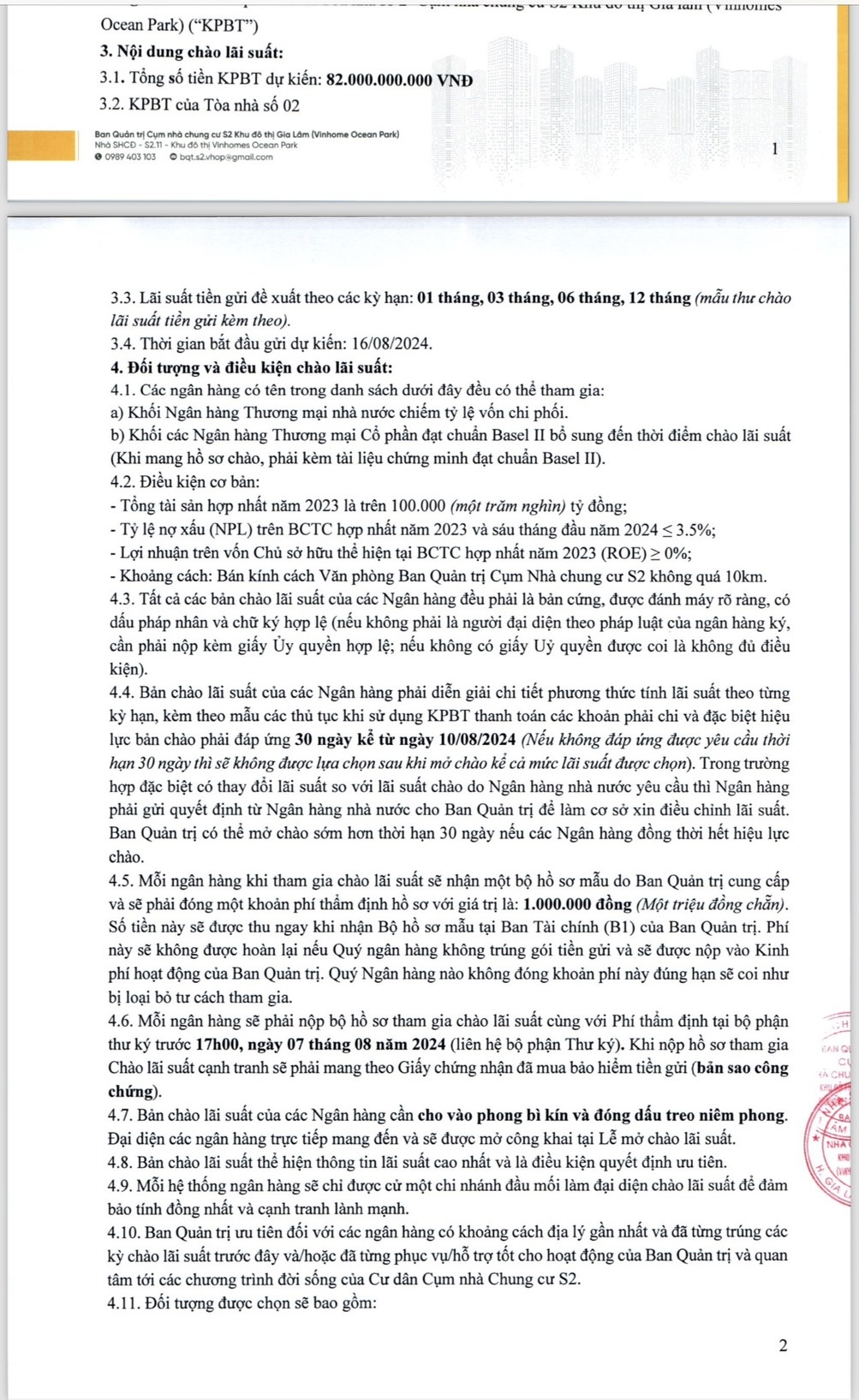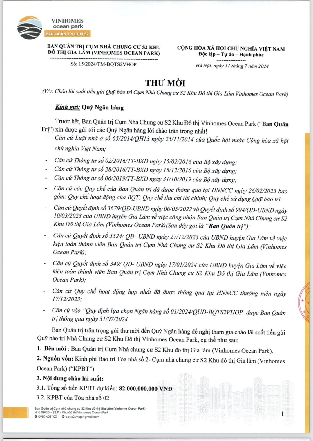 Mời chào lãi suất tiết kiệm kinh phí bảo trì Cụm S2 - Vinhomes Ocean Park 1