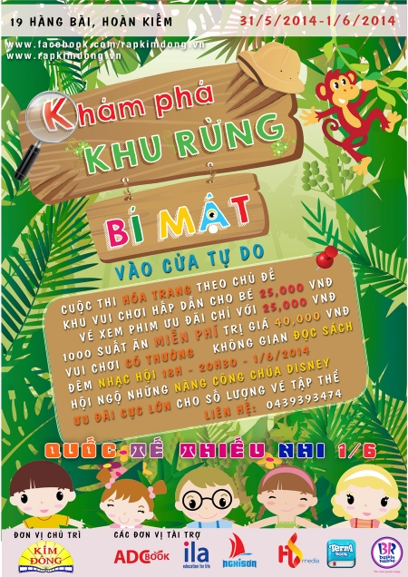 Tham gia vui chơi, hóa trang, và lưu lại những hình ảnh khoảnh khắc đáng yêu tại khu rừng bí mật, các bé còn có cơ hội nhận được những cặp vé xem phim miễn phí cùng những giải thưởng hấp dẫn của cuộc thi hóa trang qua Facebook của Rạp Kim Đồng.