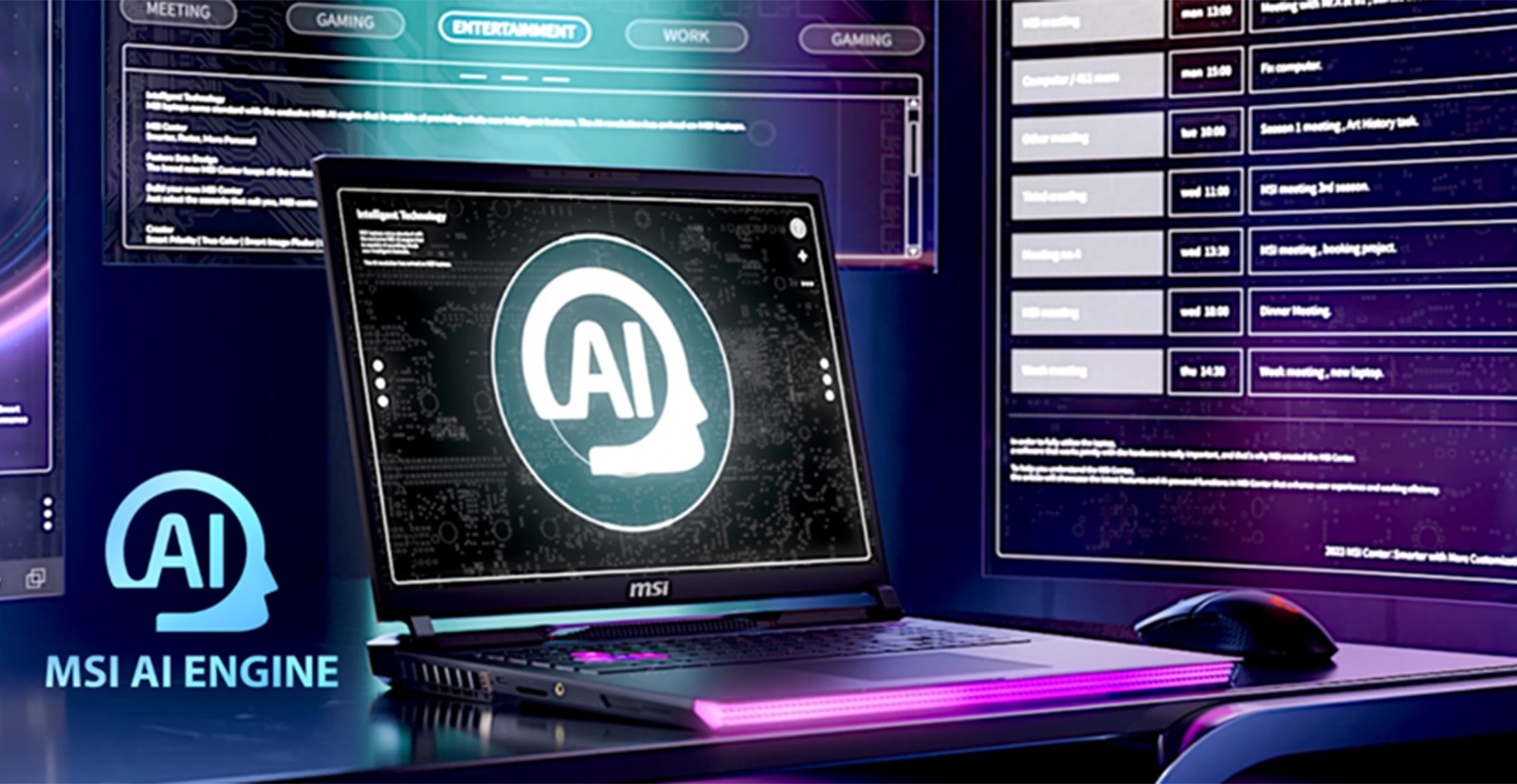 Ngoài phần cứng, MSI cũng giới thiệu bộ phần mềm AI độc quyền giúp tối ưu trải nghiệm của người dùng, bao gồm AI Engine, AI Artist và AI Noise Cancellation Pro. Trong đó, AI Engine sẽ tự động tối ưu hóa hệ thống tùy theo nhu cầu sử dụng, AI Artist giúp tăng hiệu quả làm việc của các nhà sáng tạo nội dung, còn AI Noise Cancellation Pro sẽ mang lại chất lượng thu âm như trong studio, bất kể môi trường xung quanh có nhiều tiếng ồn.