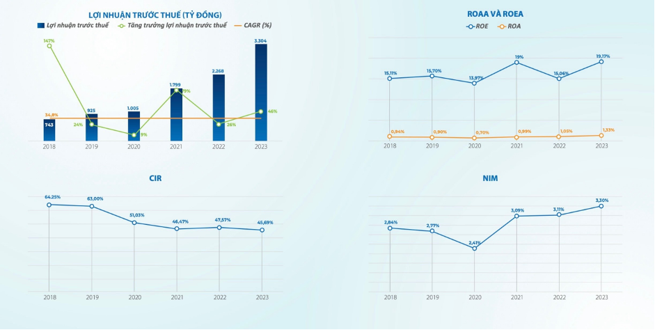| Các chỉ tiêu hiệu quả hoạt động của Nam A Bank trong năm 2023 |