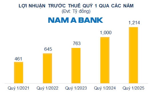 Theo đó, tính đến ngày 31/3/2025, tổng tài sản Nam A Bank đạt gần 263.000 tỷ đồng, tăng hơn 7% so với đầu năm 2025. Hoạt động tín dụng đạt gần 178.000 tỷ đồng, tăng 6% so với đầu năm. Huy động vốn đạt gần 204.000 tỷ đồng, tăng gần 14% so với đầu năm 2024. Lợi nhuận trước thuế đạt 1.214 tỷ đồng (tương ứng tăng 21,52% so với cùng kỳ năm 2024).