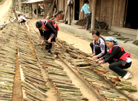 Nhân dân xã Nậm Đét phơi quế thành phẩm